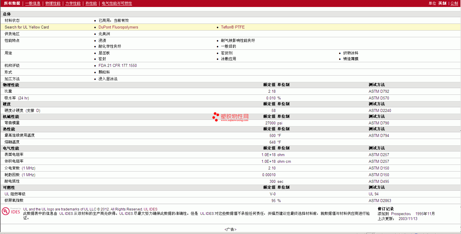 更多Teflon PTFE 30 物性表报价,图片、材质证明、UL黄卡、物质安全资料表(MSDS)等可来电咨询赵先生:13424755533或QQ: 27660005