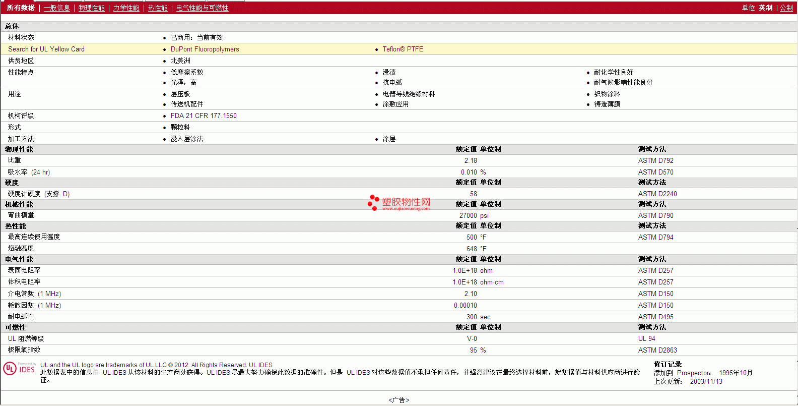 更多 Teflon PTFE 30B 物性表报价,图片、材质证明、UL黄卡、物质安全资料表(MSDS)等,最新行情报价等可来电咨询赵先生:13424755533或QQ: 27660005