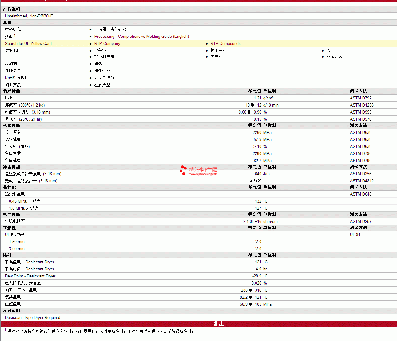 RTP Compounds pc 300 FR A物性表 见图片