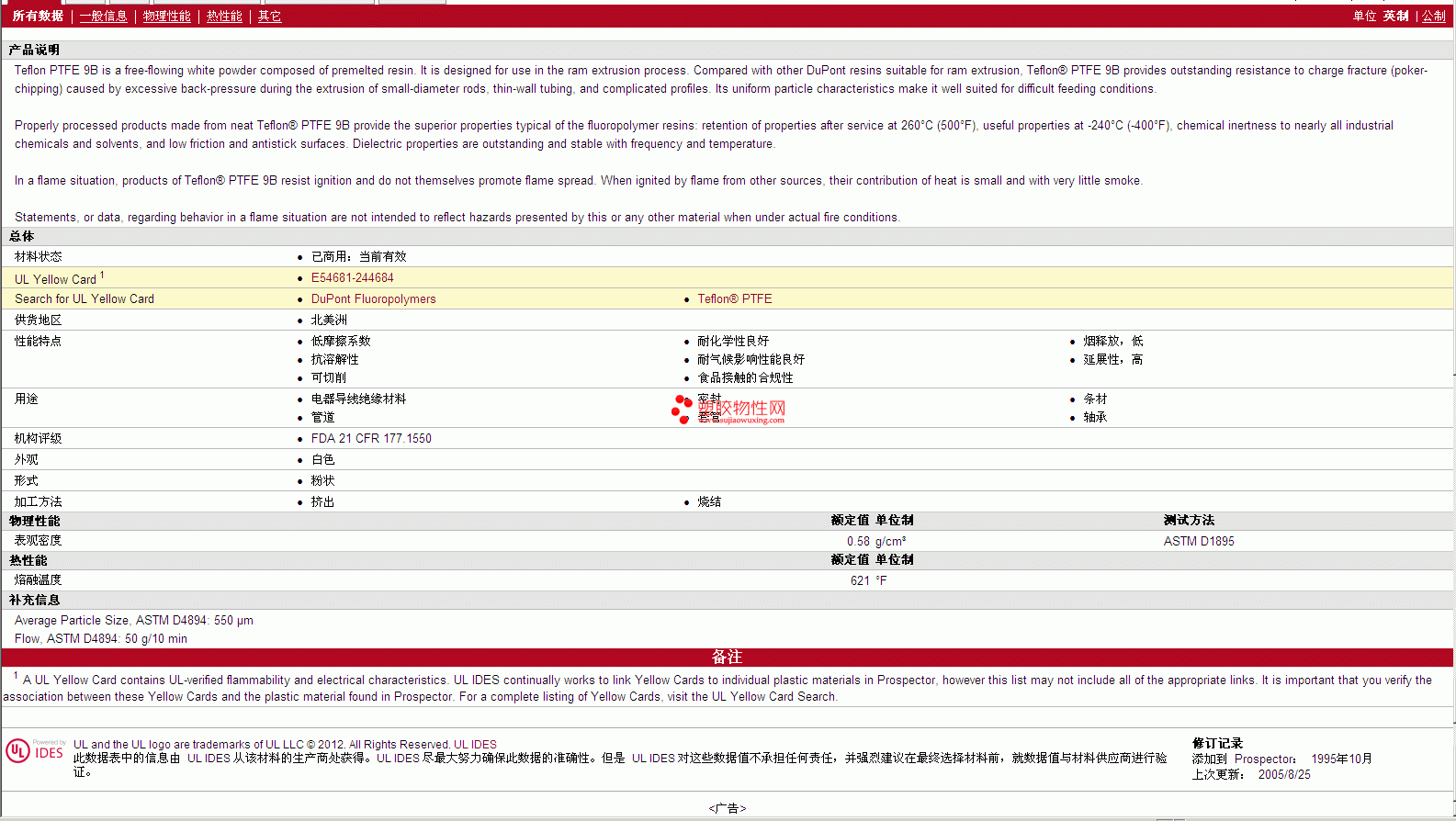 更多Teflon PTFE 9B 物性表图片,报价、物质安全资料表(MSDS)、材质证明、UL黄卡等,最新行情报价等可来电咨询赵先生:13424755533或QQ: 27660005