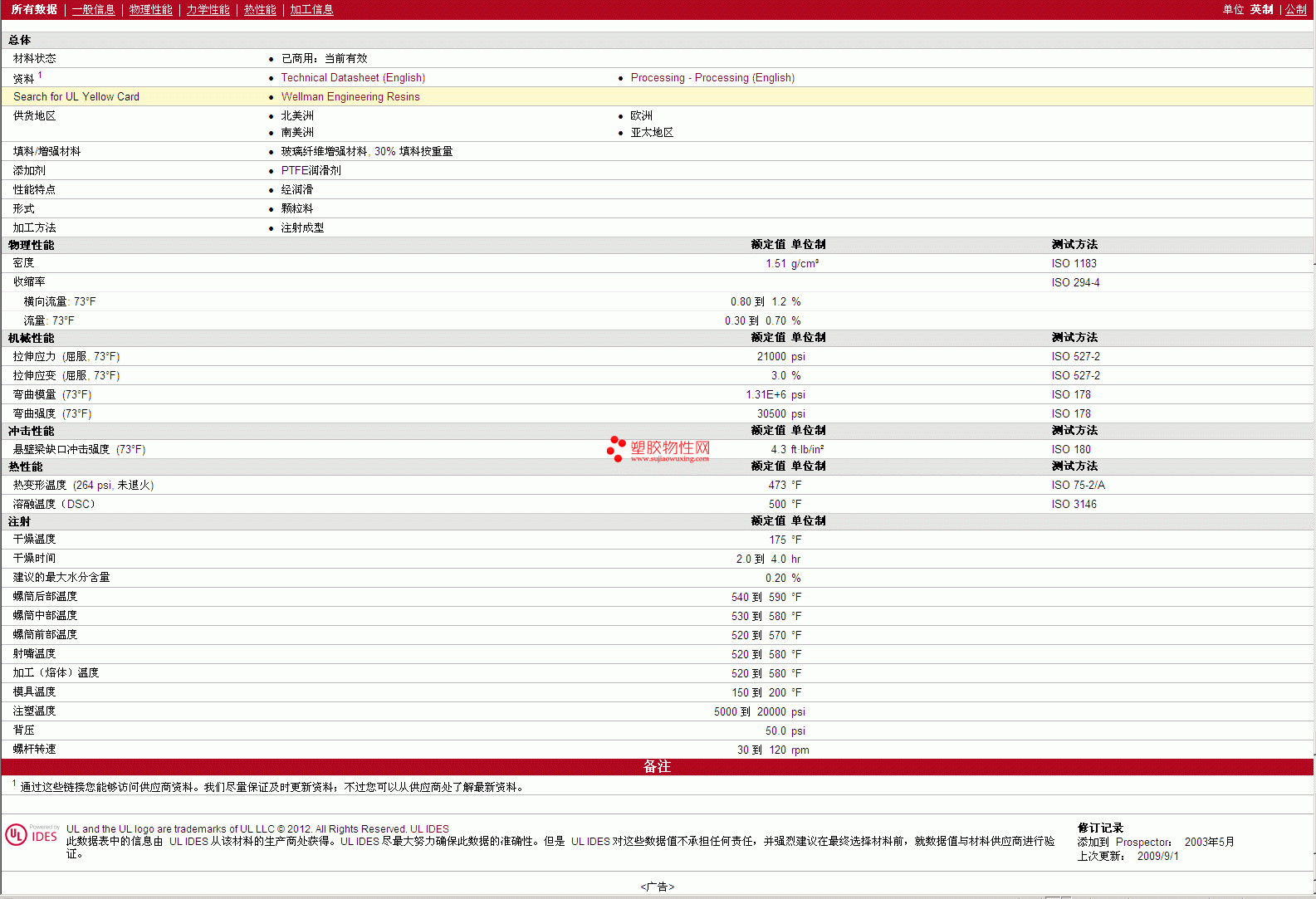 其他工程塑料物性表