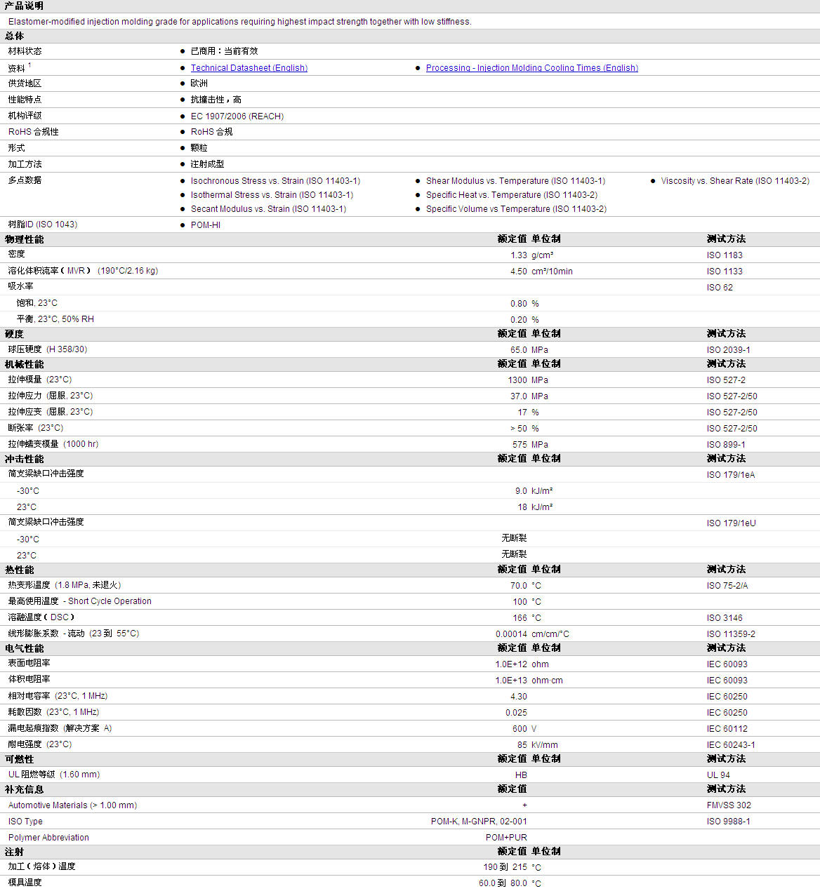 | 机械性能 | 额定值 | 单位制 | 测试方法 |