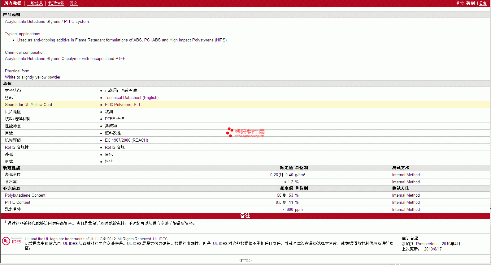 如需了解ELIX PTFE 190 TE 物性表更多详情,ROHS(SGS)报告、物质安全资料表(MSDS)、材质证明、UL黄卡等,最新行情报价等可来电咨询:赵先生:13424755533或QQ: 27660005