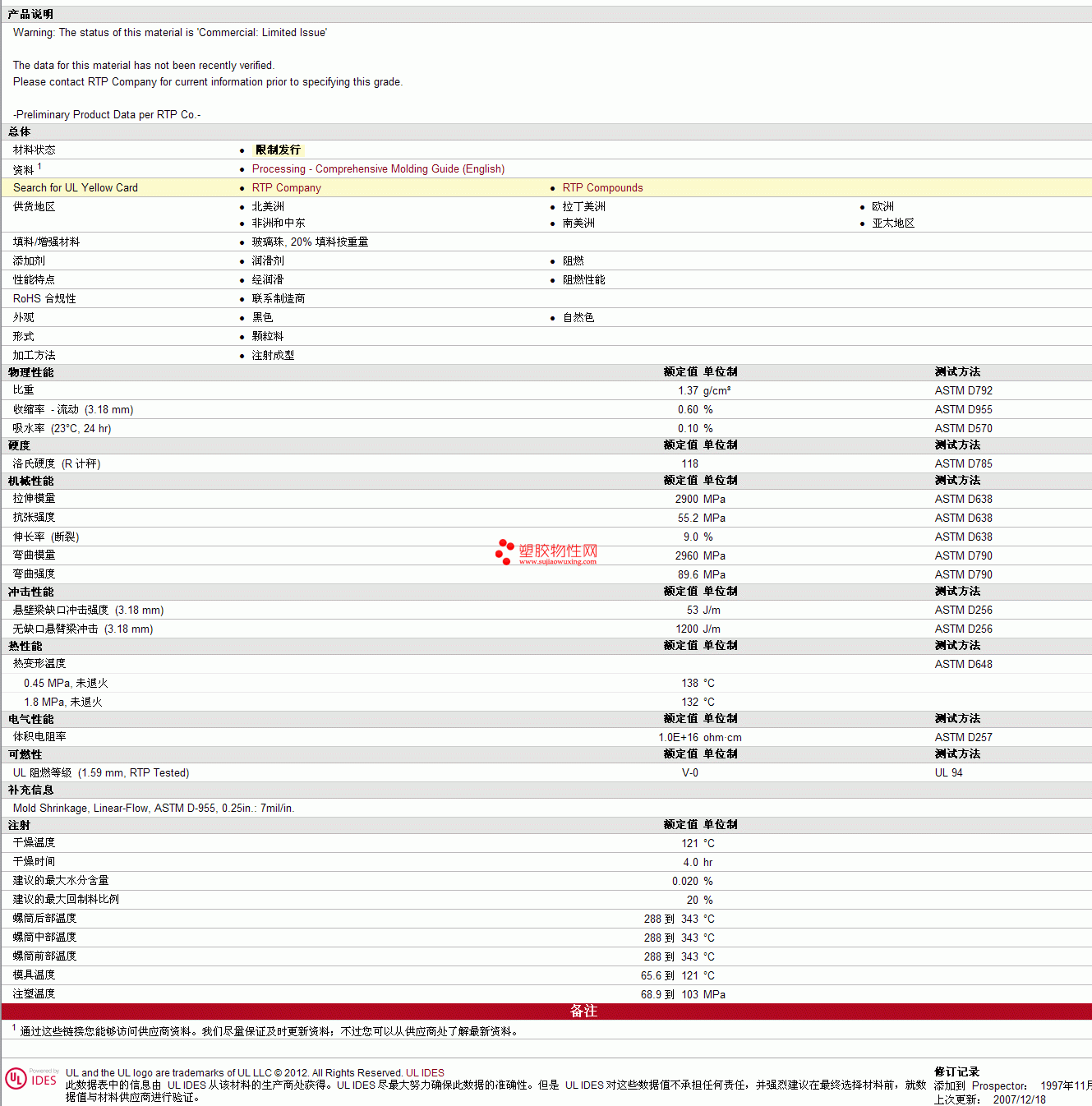 RTP Compounds pc 300 GB 20 FR L物性表 见图片