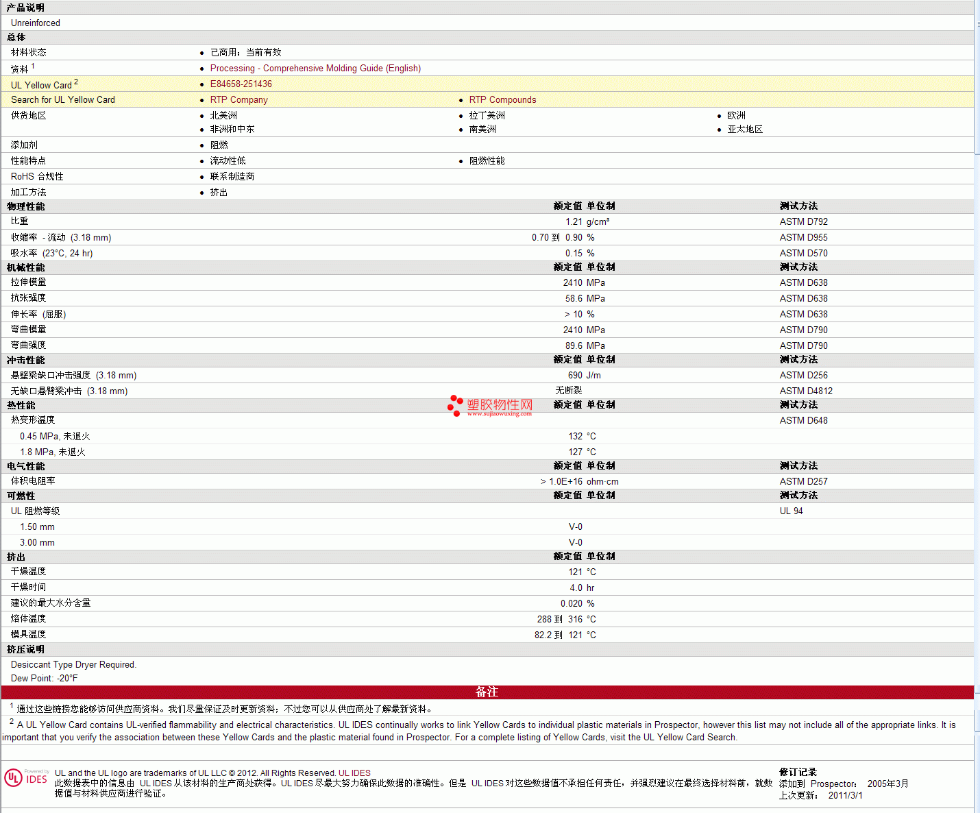 RTP Compounds pc 300 LF FR A物性表 见图片