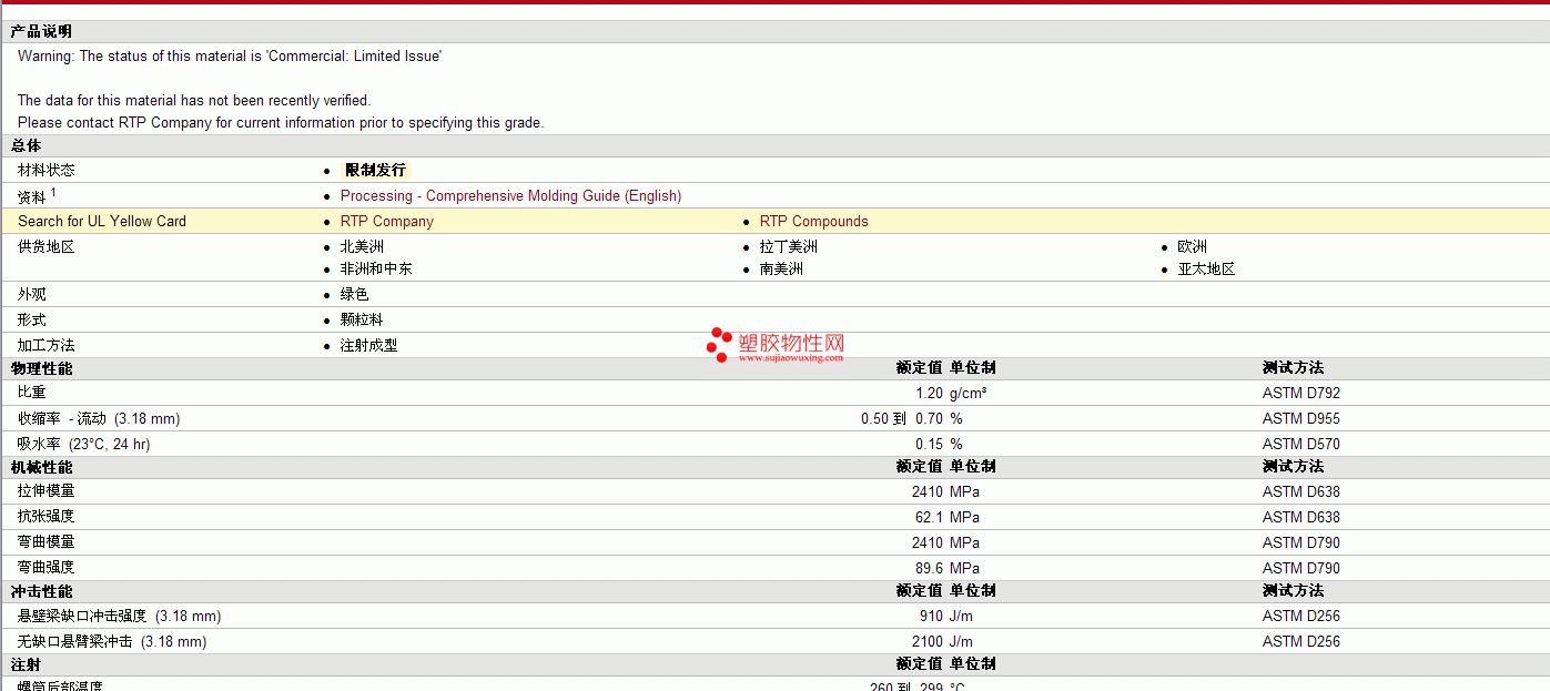 RTP Compounds pc 300 S-62490 GREEN物性表 见图片