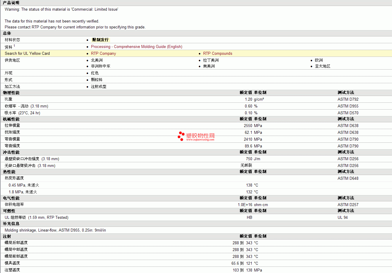 RTP Compounds pc 300 SC-51811 RED物性表 见图片