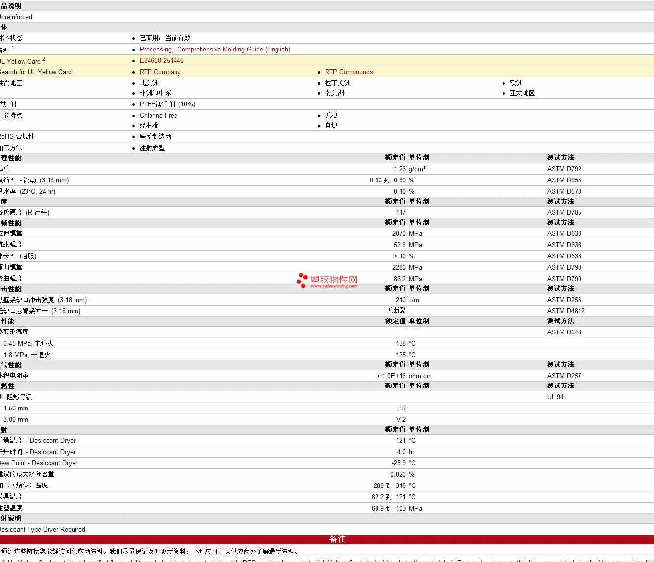 RTP Compounds pc 300 TFE 10 SE A物性表见图片
