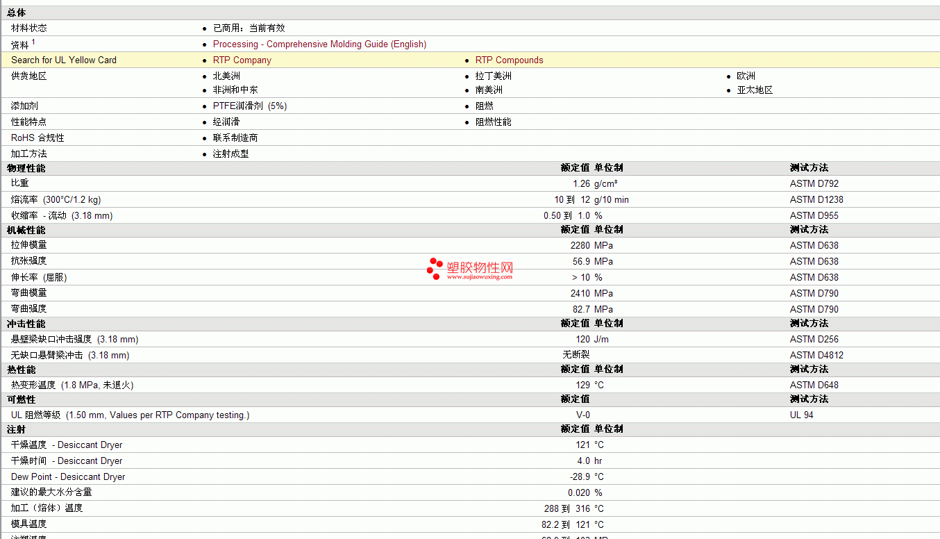 RTP Compounds pc 300 TFE 5 FR L物性表 图片