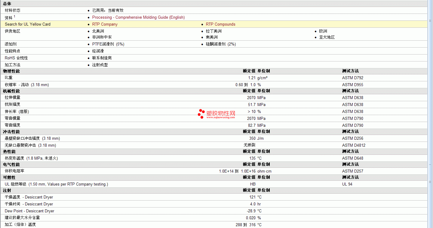 RTP Compounds pc 300 TFE 5 SI 2物性表 见图片