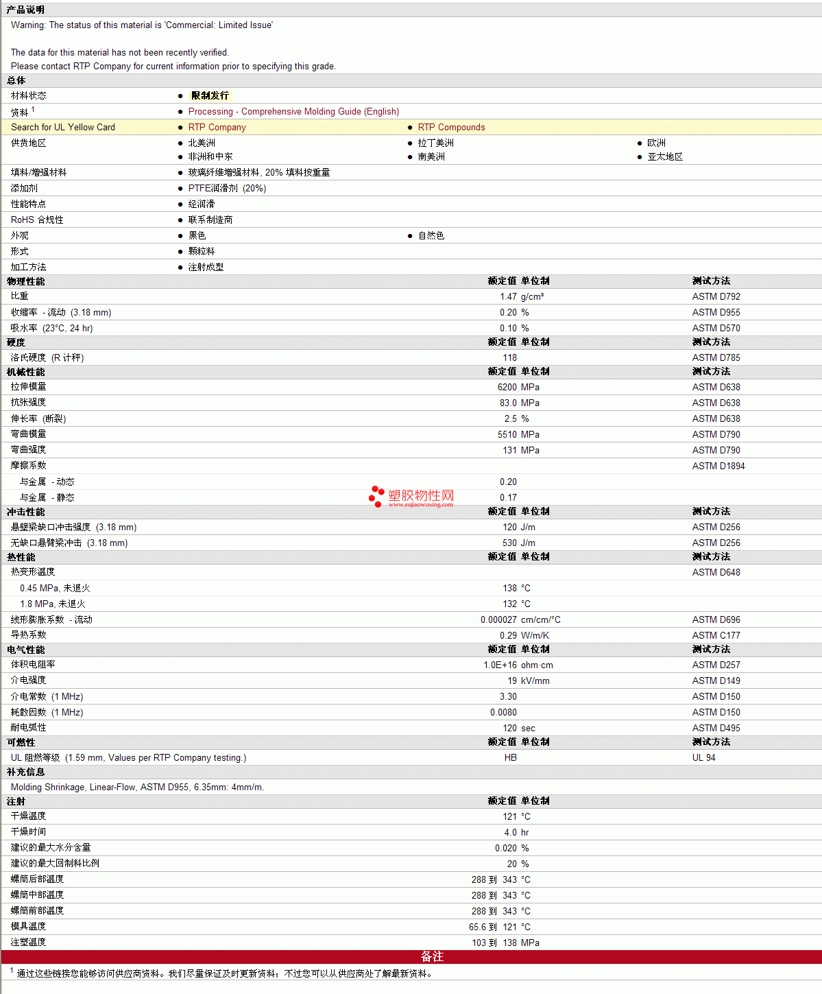 RTP Compounds pc 303 M TFE 20 S-72119 Blue物性表 见图片