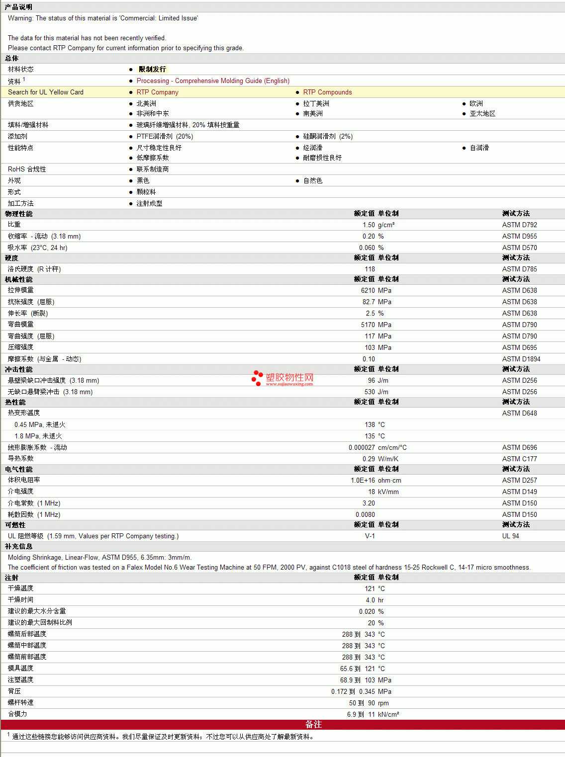 RTP Compounds pc 303 TFE 20 SI 2物性表 见图片