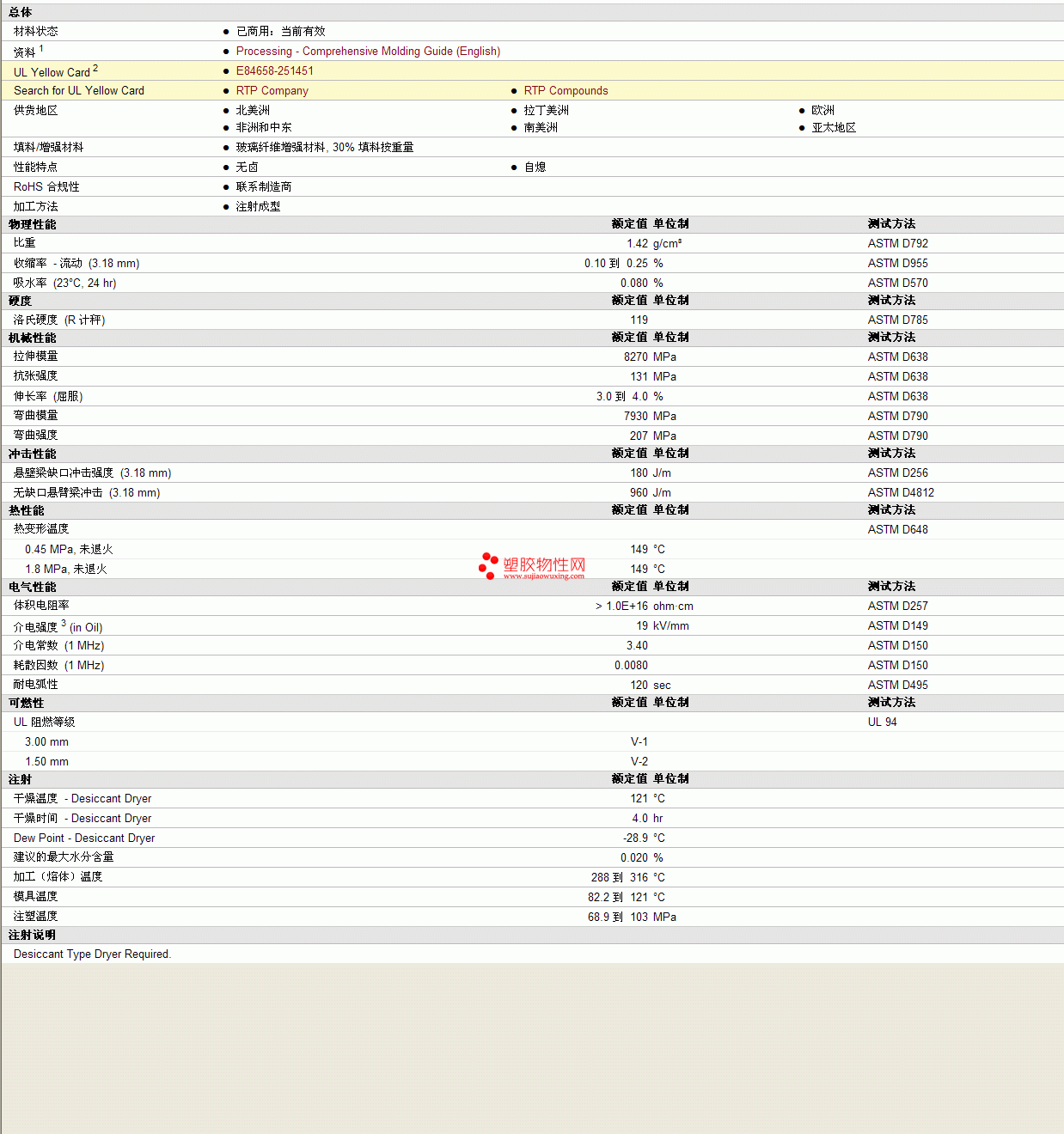 | 收缩率 - 流动 (3.18 mm) | 0.10 到 0.25 | % | ASTM D955 |
