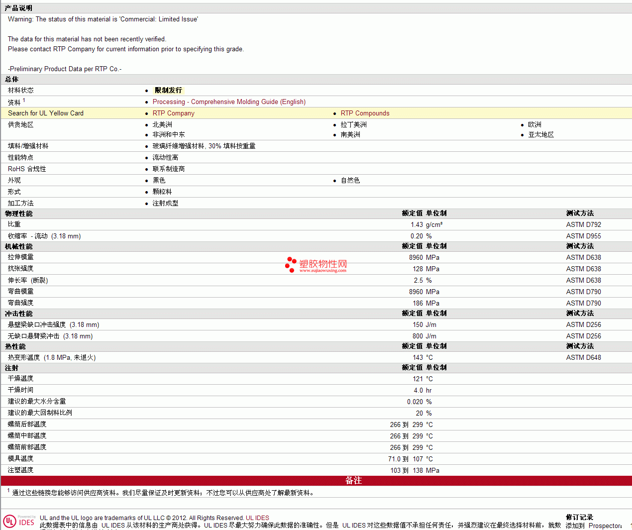 RTP Compounds pc 305 B物性表 见图片