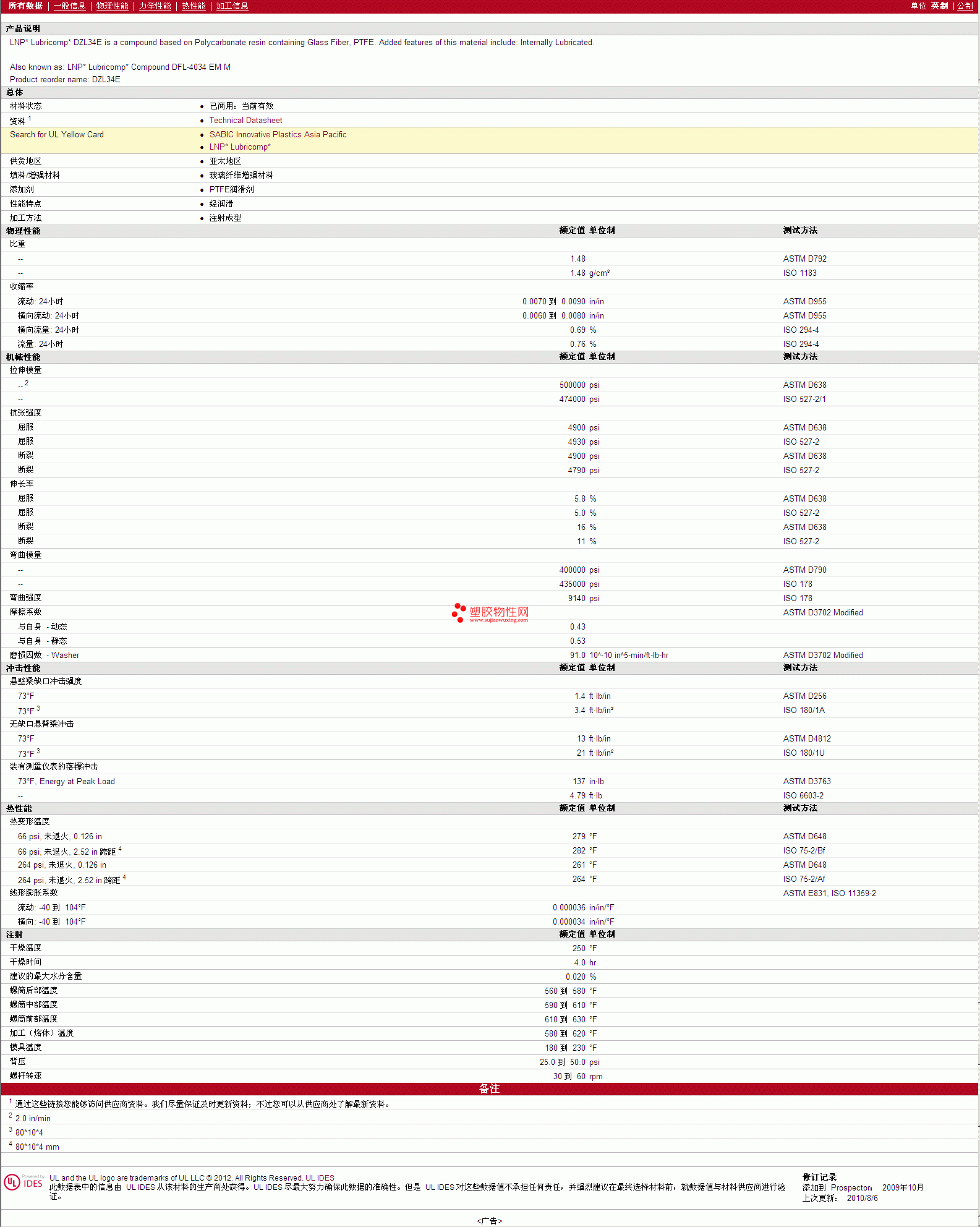LNP Lubricomp PTFE DZL34E详细情况如图