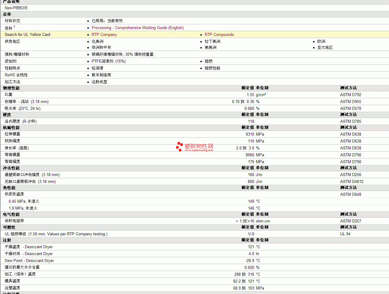 RTP Compounds pc 305 TFE 15 FR物性表见图片