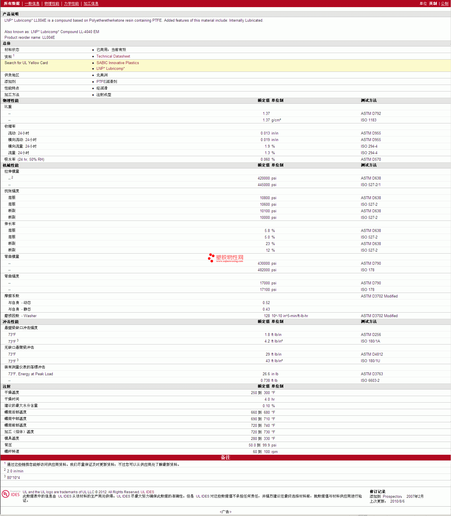 需要了解 LNP Lubricomp PTFE LL004E 更多详情,赵先生:13424755533或QQ: 27660005