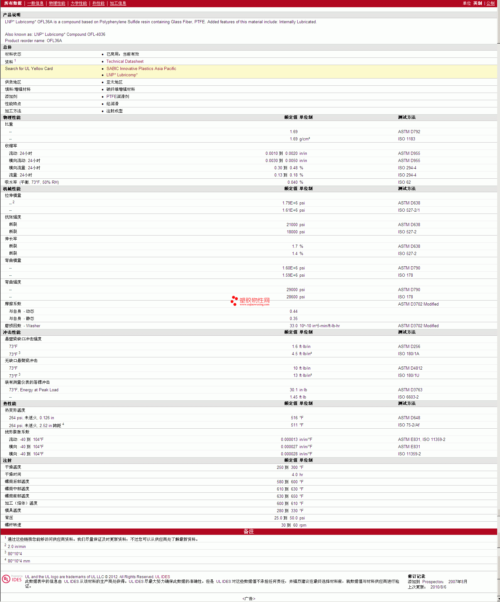 LNP Lubricomp PTFE OFL36A 详细情况如图