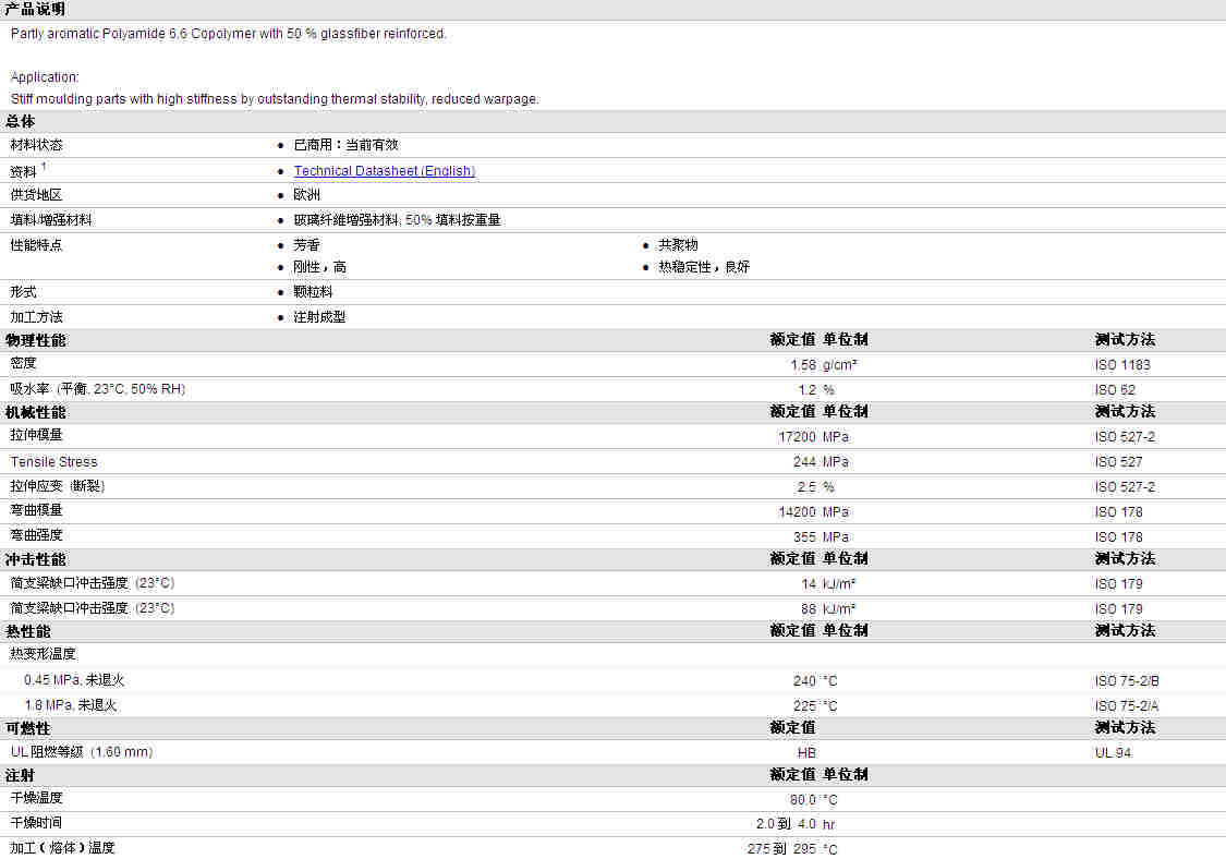 | 拉伸模量 | 17200 | MPa | ISO 527-2 |