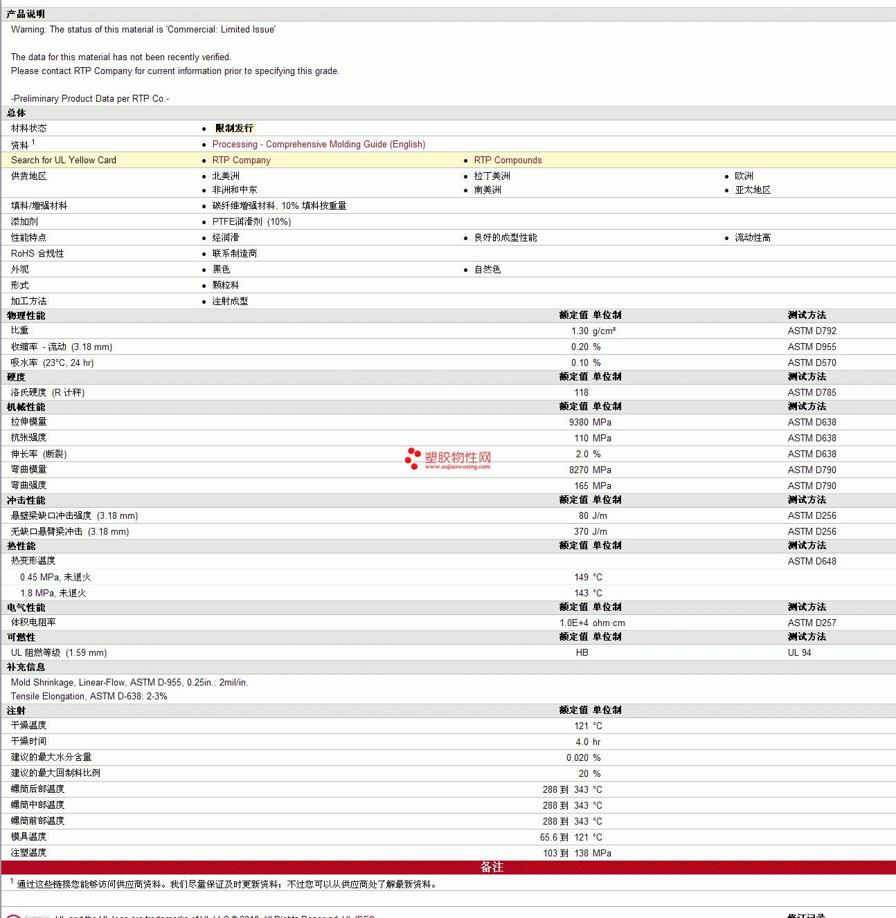RTP Compounds pc 381 TFE 10 EM HF物性表见图片