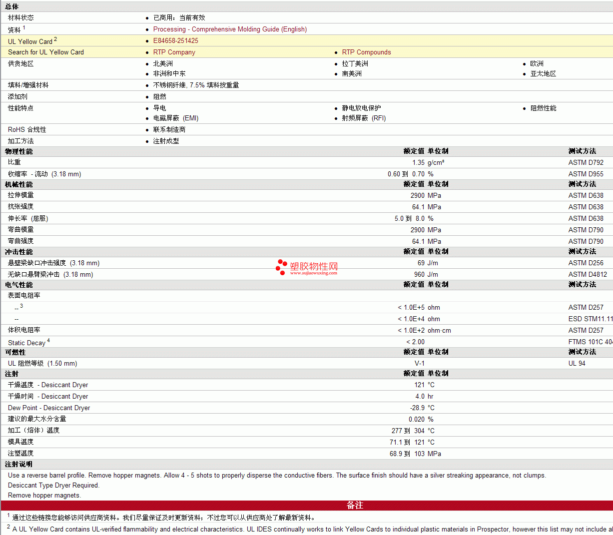| 收缩率 - 流动 (3.18 mm) | 0.60 到 0.70 | % | ASTM D955 |