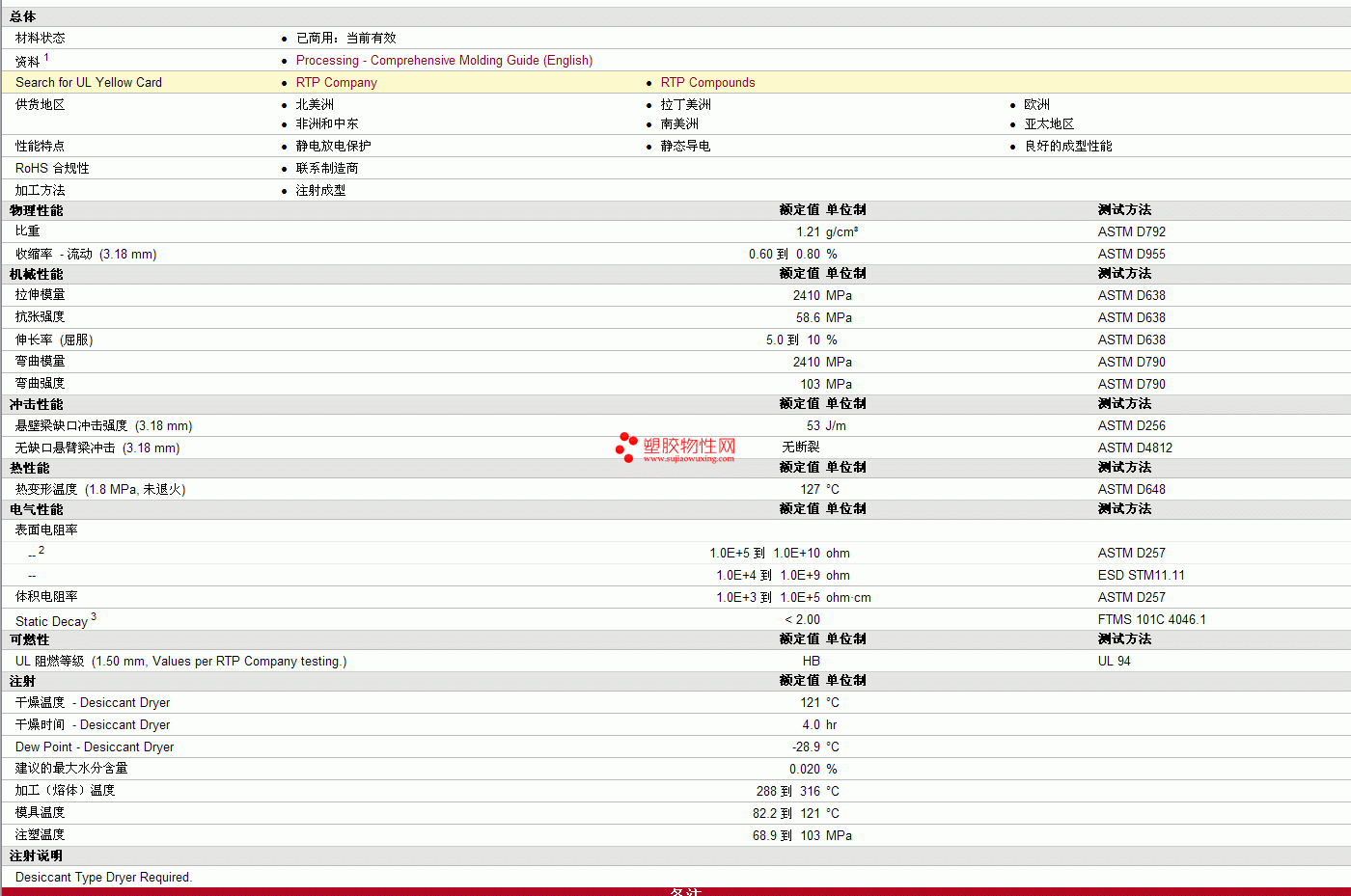 RTP Compounds pc ESD 300 EM物性表 见图片