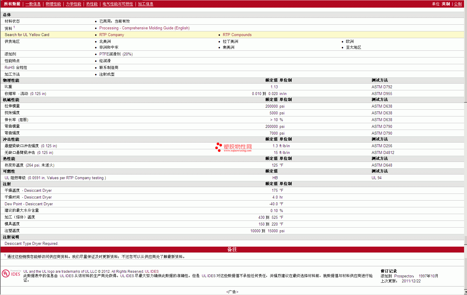 更多RTP Compounds PTFE 200 F TFE 20 物性表报价,图片、材质证明、UL黄卡、物质安全资料表(MSDS)等可来电咨询赵先生:13424755533或QQ: 27660005