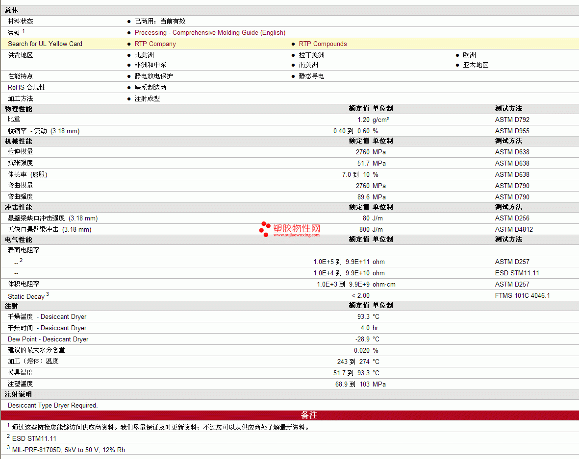 | 弯曲模量 | 2760 | MPa | ASTM D790 |