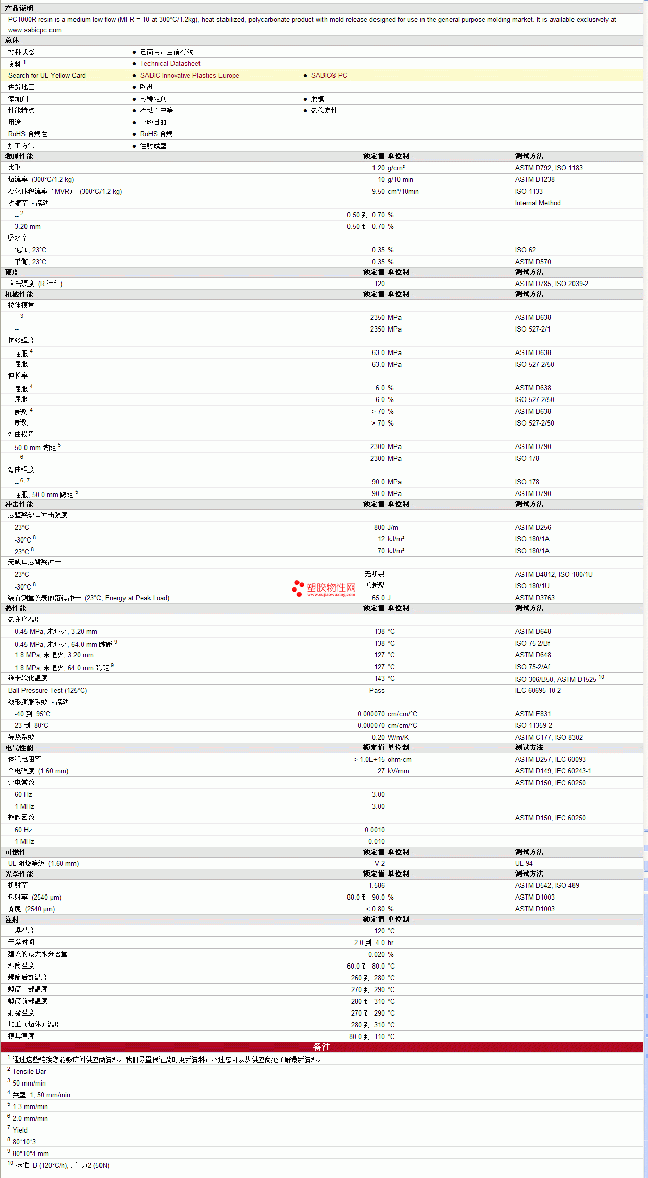 SABIC p c PC PC1000R Resin物性表 见图片