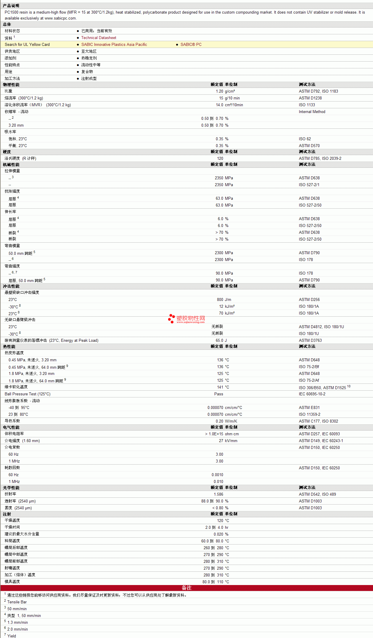 SABICpc PC PC1500 Resin 塑胶原料更多详情,PC专家,可来电咨询赵先生:13424755533 QQ:27660005