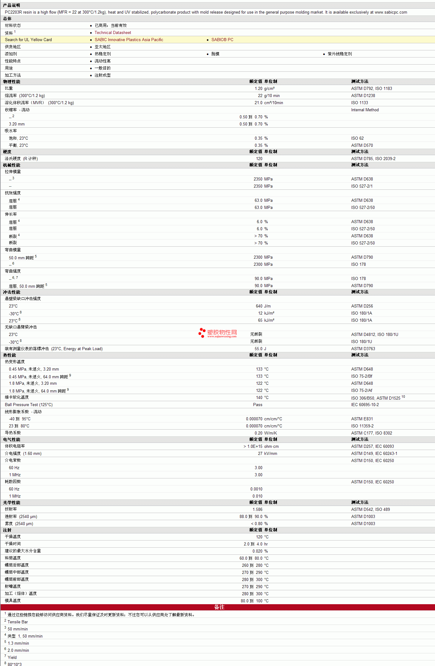 SABIC PC PC2203R Resin物性表 图片