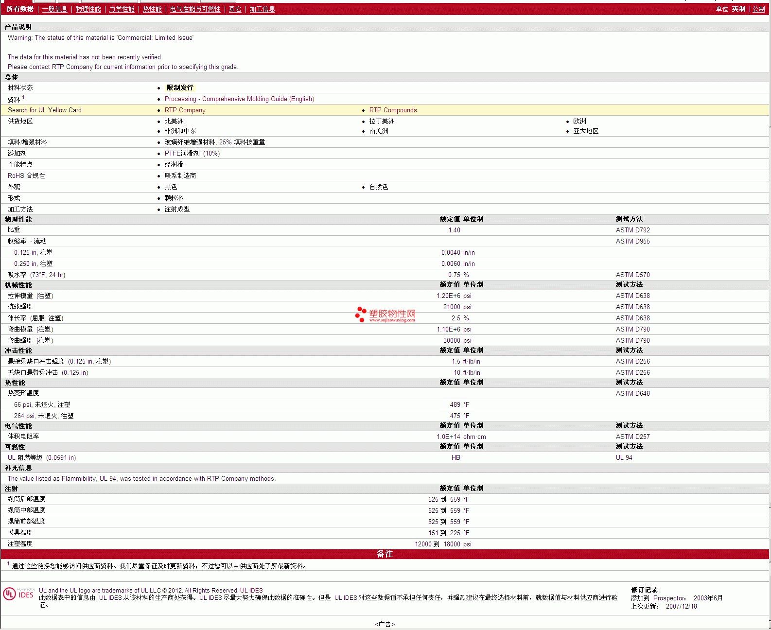 RTP Compounds PTFE 204 TFE 10 详细情况如图