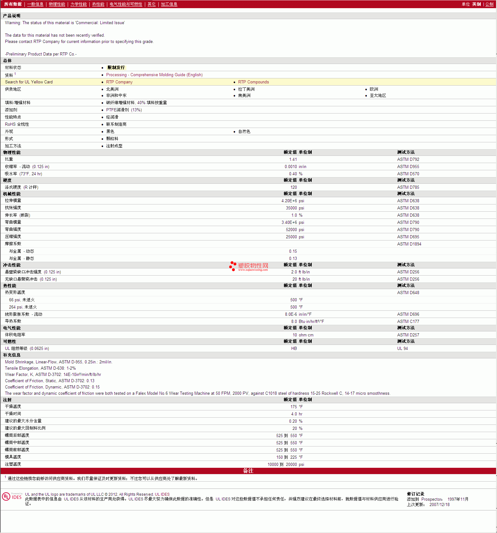 需了解 RTP Compounds PTFE 287 TFE 13 物性表材质证明、ROHS(SGS)报告、物质安全资料表(MSDS)、UL黄卡等可来电咨询:赵先生:13424755533或QQ: 27660005