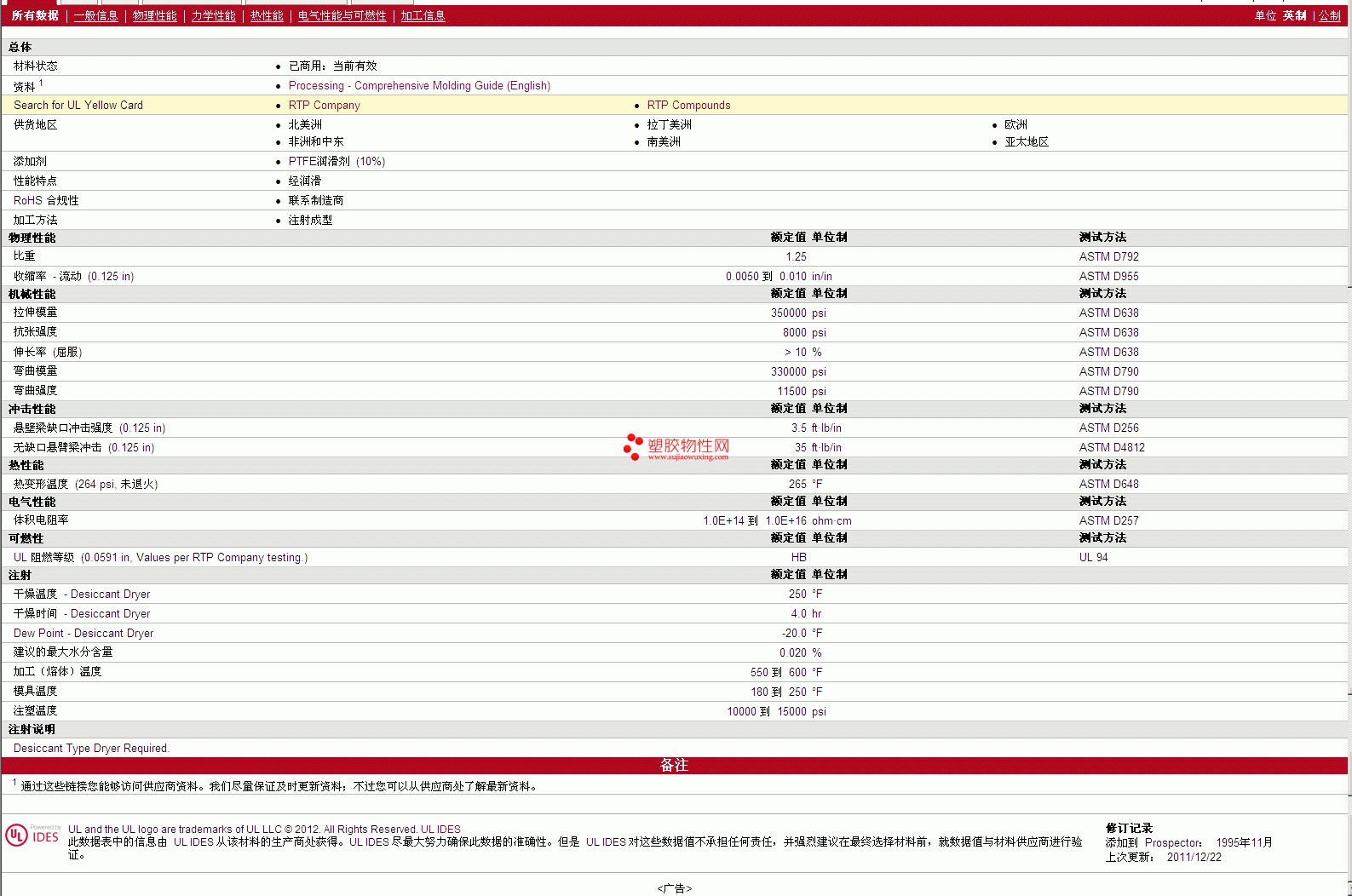 更多RTP Compounds PTFE 300 TFE 10 物性表报价,图片、材质证明、UL黄卡、物质安全资料表(MSDS)等,最新行情报价等可来电咨询赵先生:13424755533或QQ: 27660005