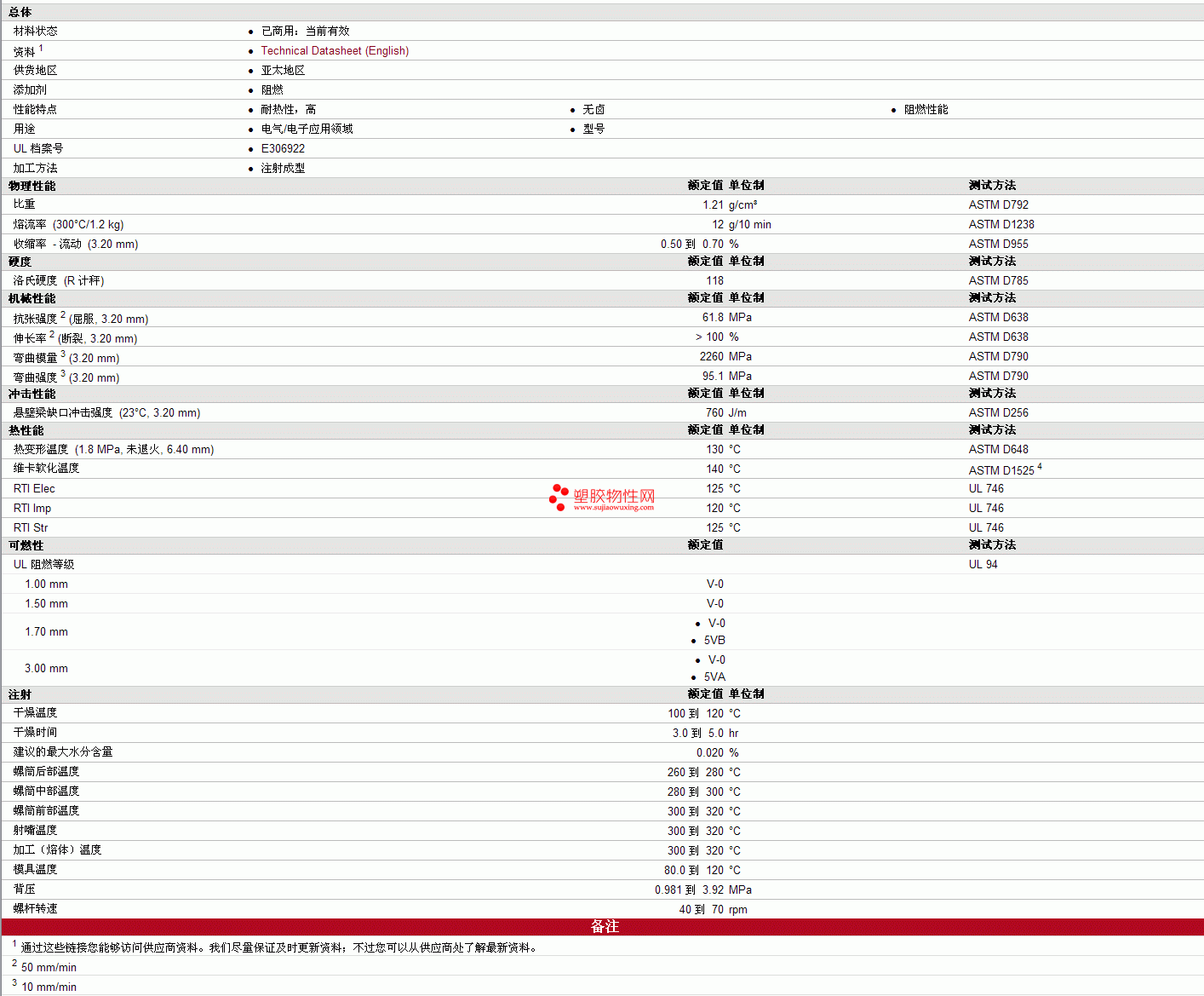 | 收缩率 - 流动 (3.20 mm) | 0.50 到 0.70 | % | ASTM D955 |