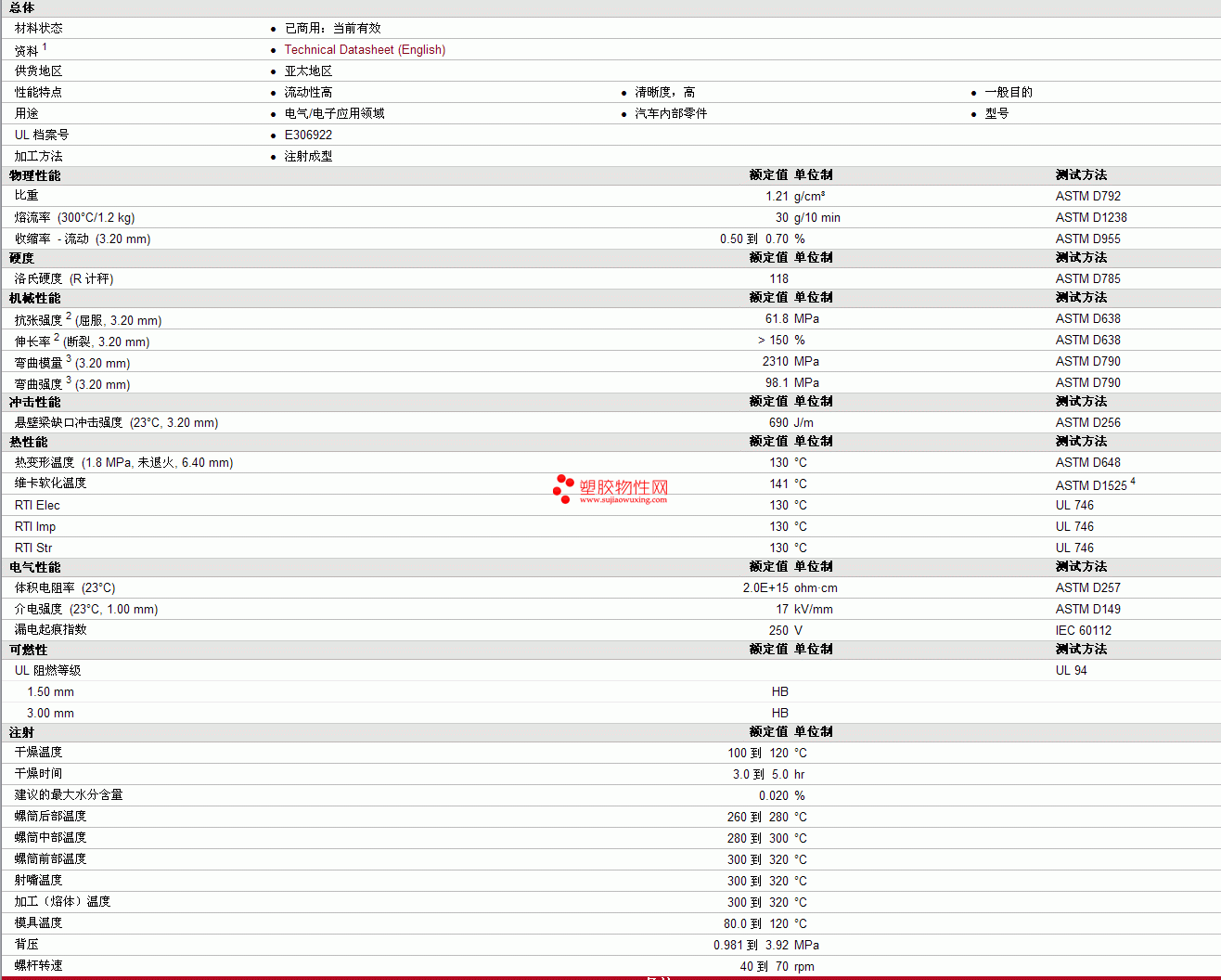 Sindustris PC GP1001LS物性表 见图片