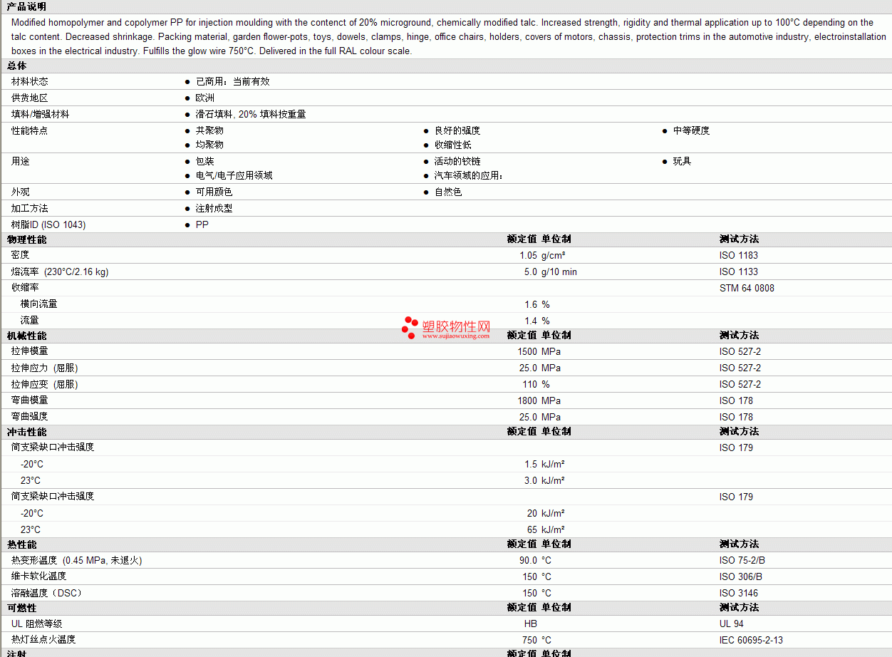 Polypropylene (PP) M(a)UP100 UL黄卡