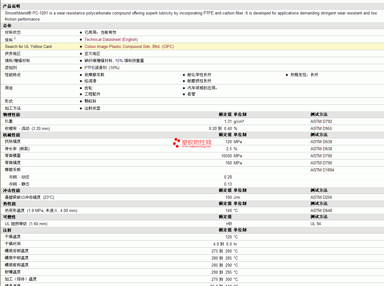 Smoothblend PC-1201物性表 见图片