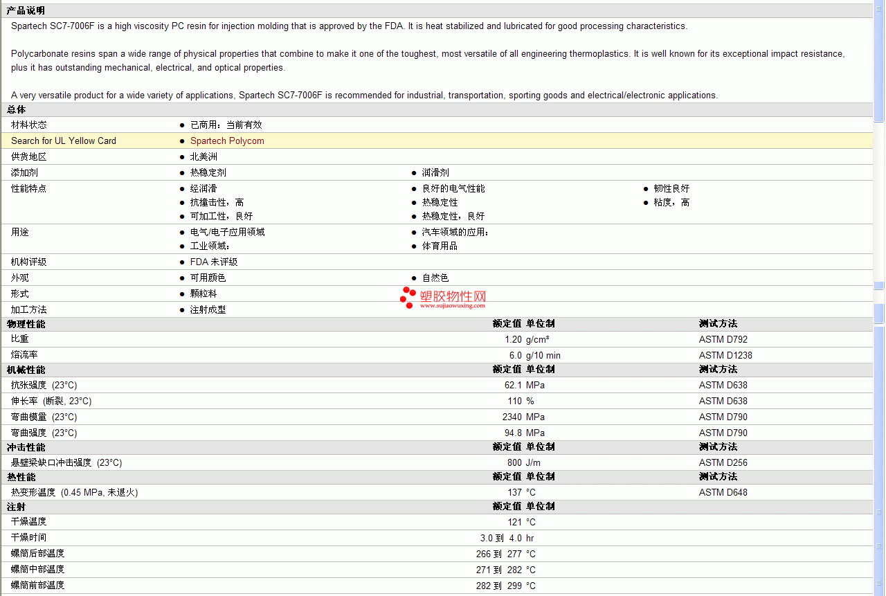 Spartech Polycom pc SC7-7006F 物性表 图片