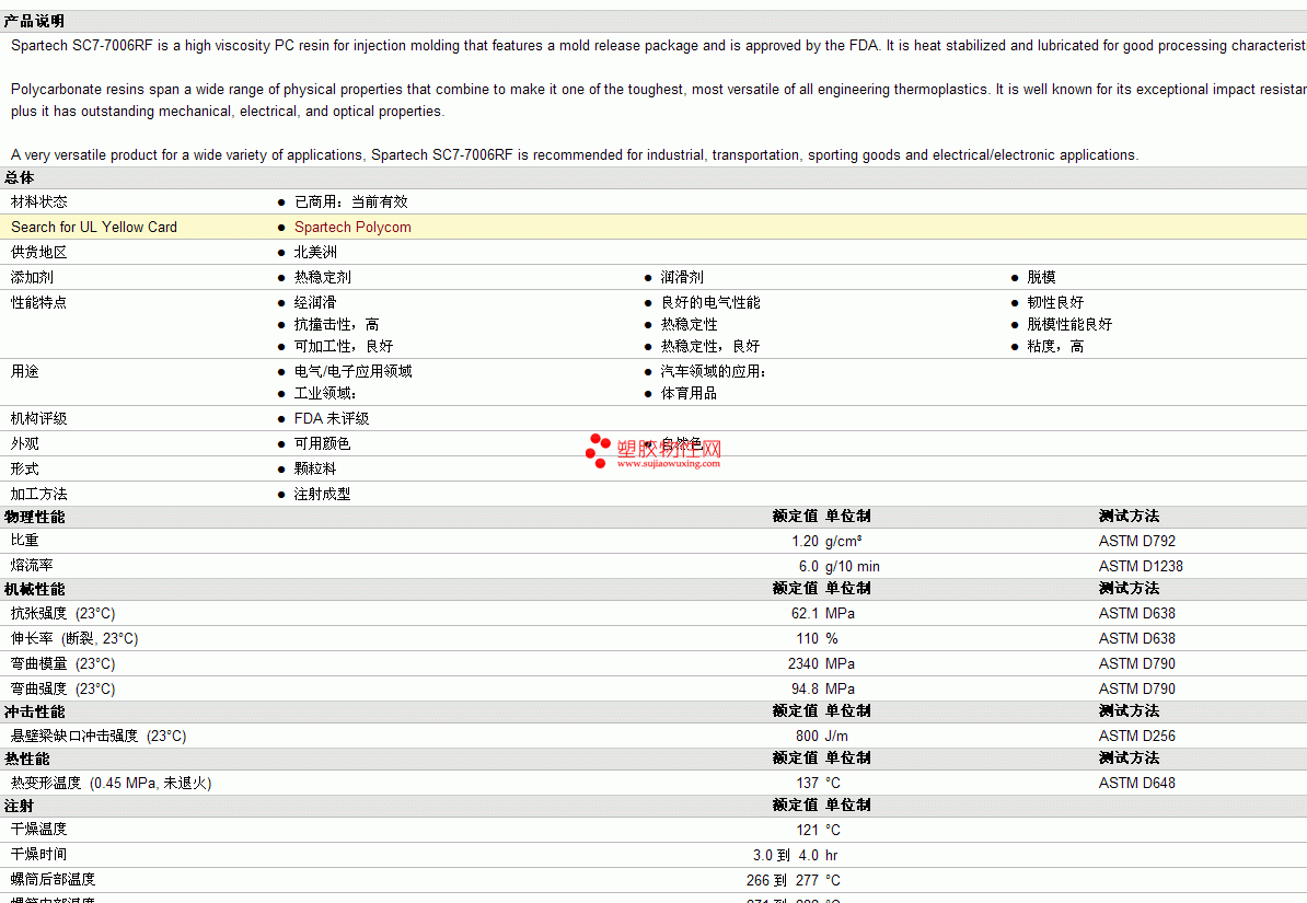 Spartech Polycom pc SC7-7006RF物性表见图片