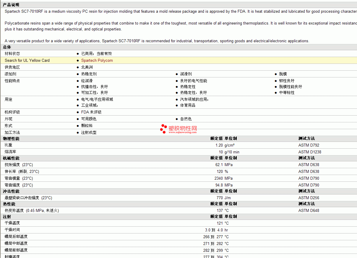 Spartech Polycom p c SC7-7010RF物性表 图片