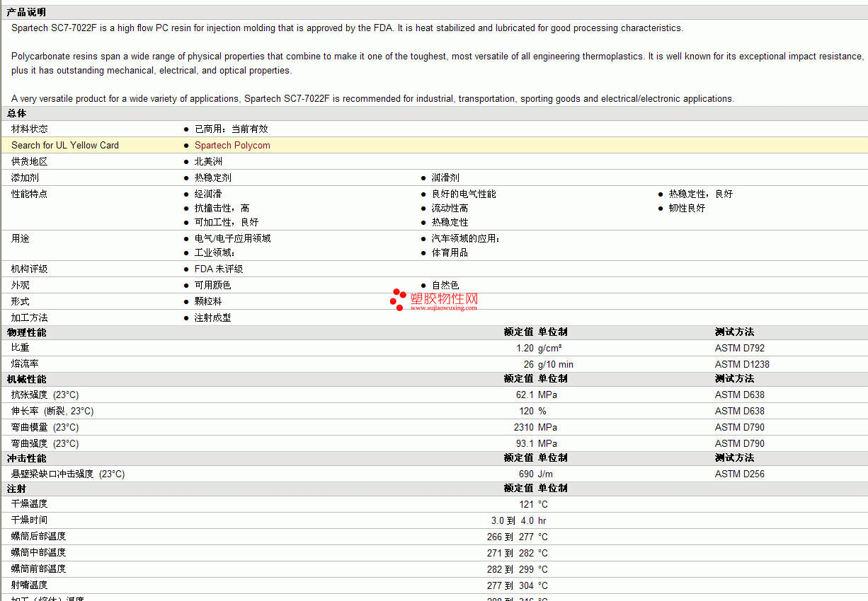 Spartech Polycom pc SC7-7022F物性表 见图片