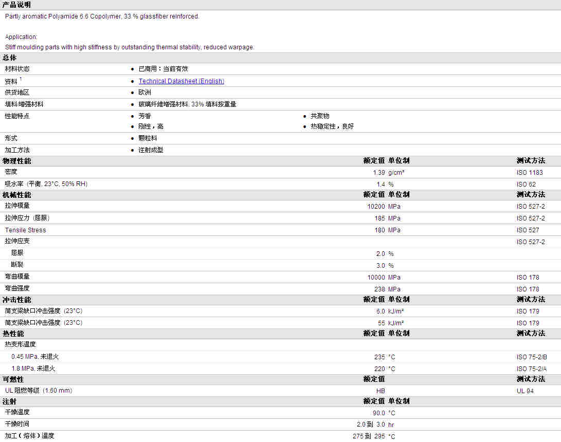 TEREZ PA66 HT 7110 GF 33物性表资料详细内容如图
