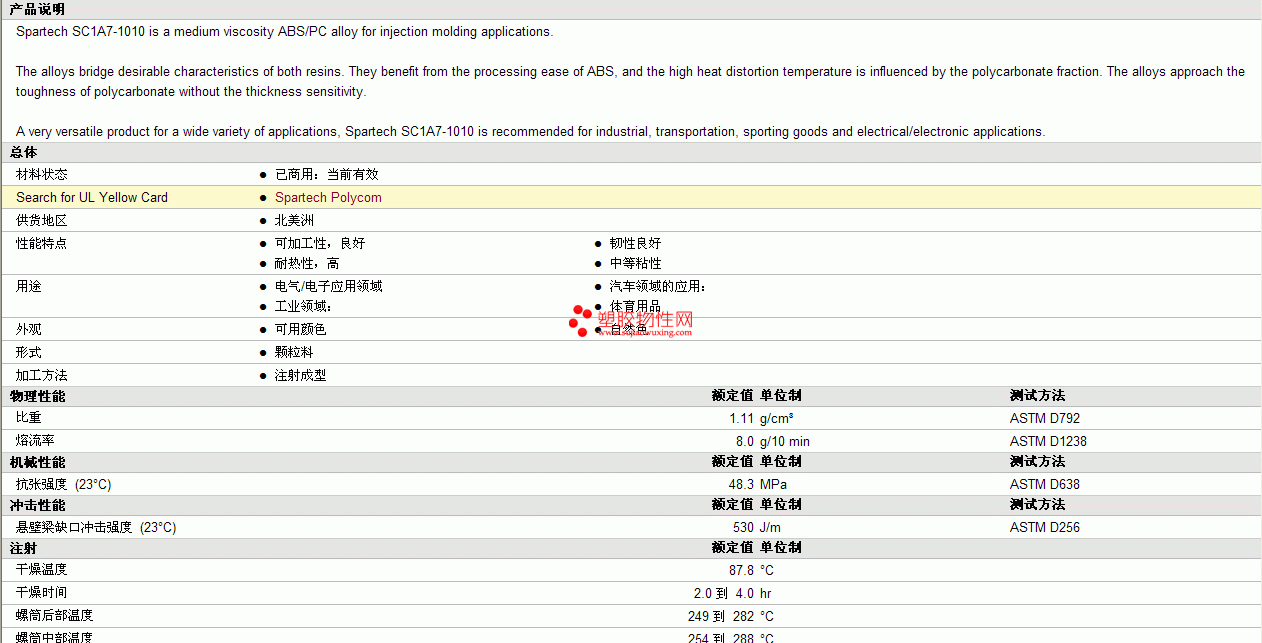 Spartech Polycom pc SC1A7-1010物性表见图片