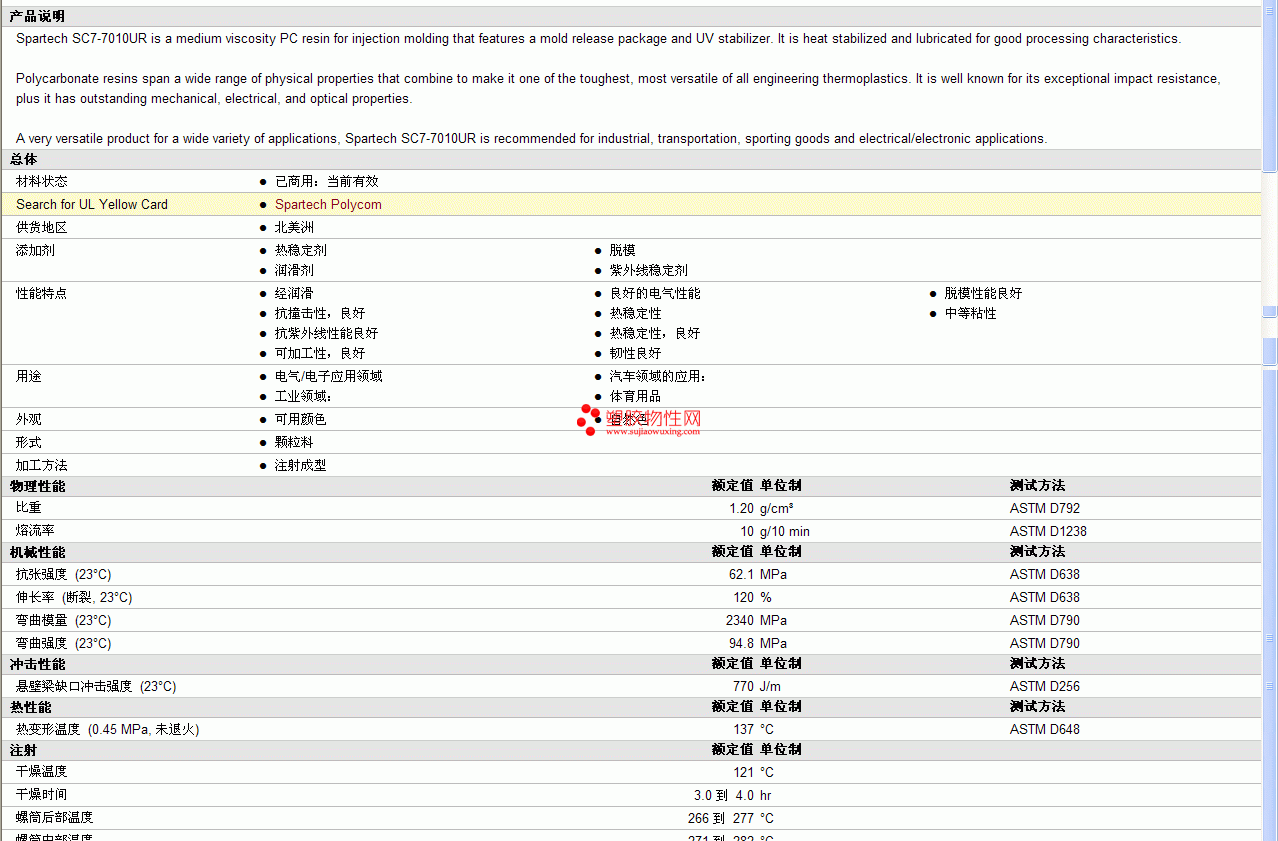 Spartech pc Polycom SC7-7010UR物性表 见图片
