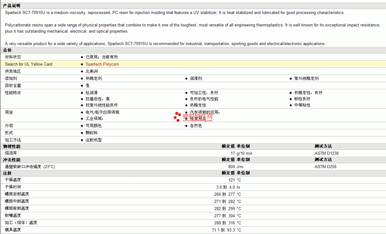 Spartech pc Polycom SC7-70915U物性表 见图片
