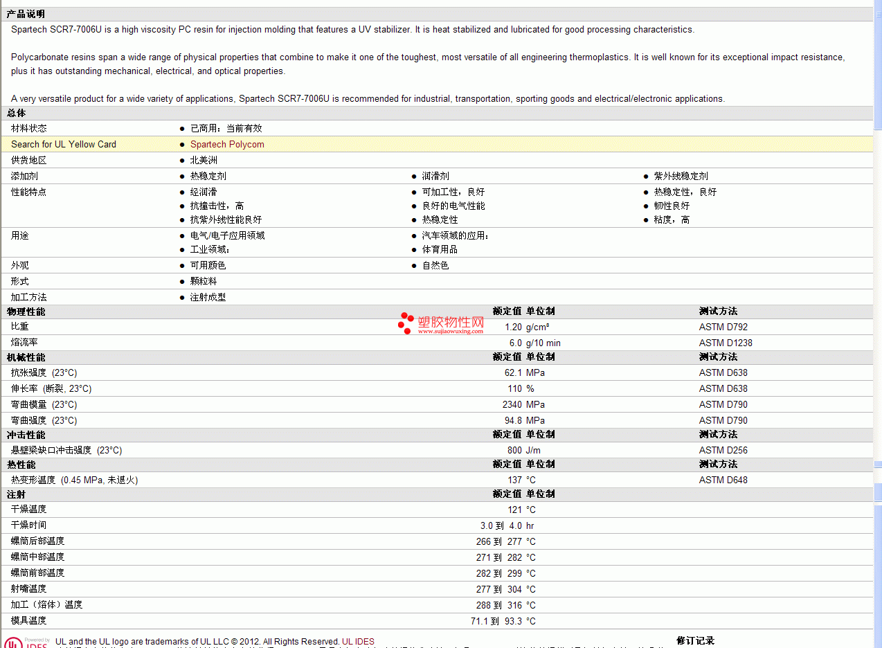 Spartech pc Polycom SCR7-7006U物性表 见图片