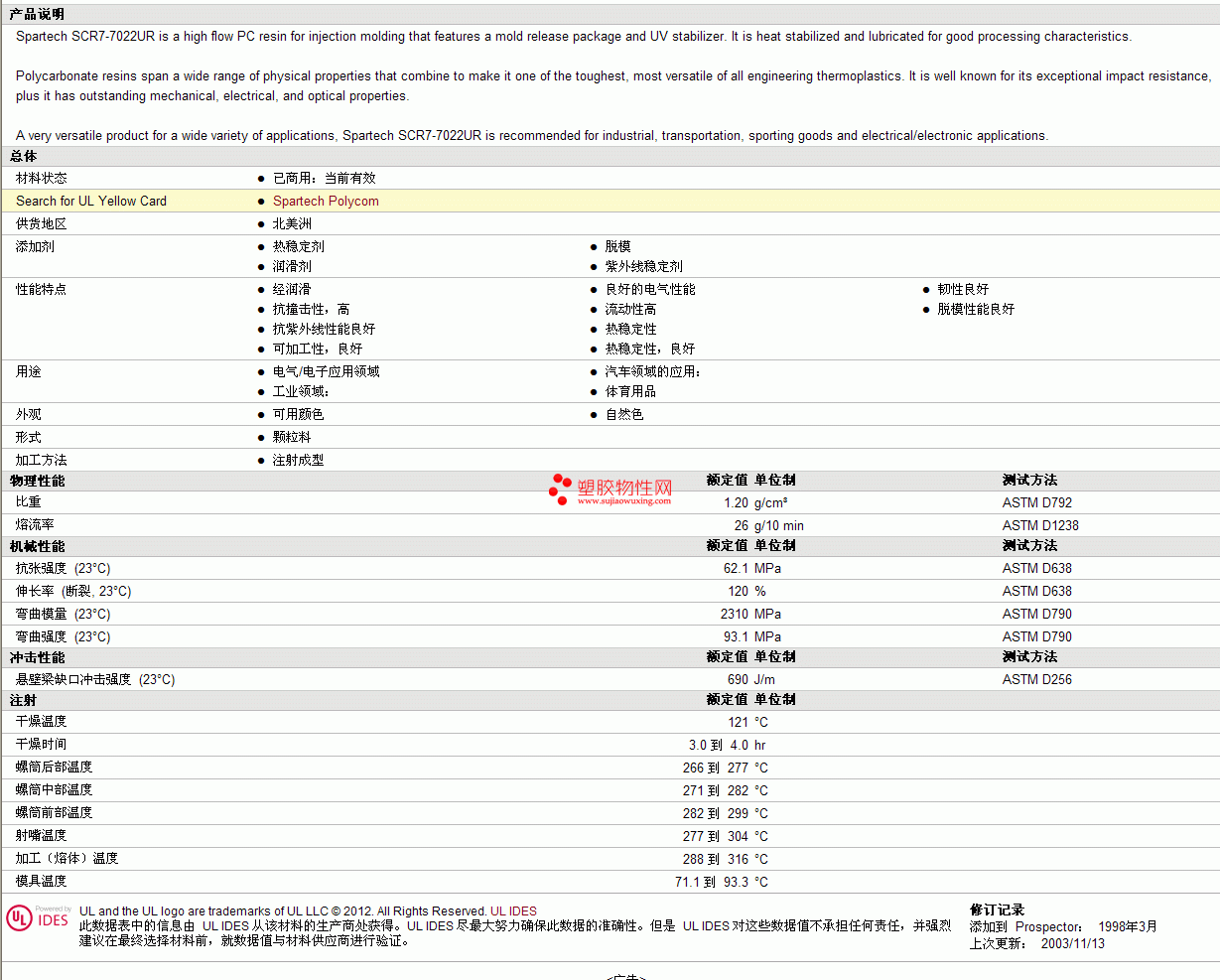 Spartech pc Polycom SCR7-7022UR物性表见图片