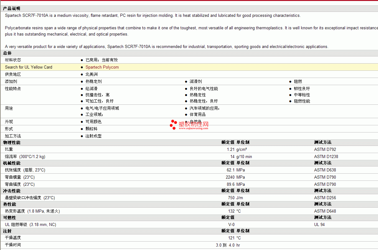Spartech pc Polycom SCR7F-7010A物性表 见图片