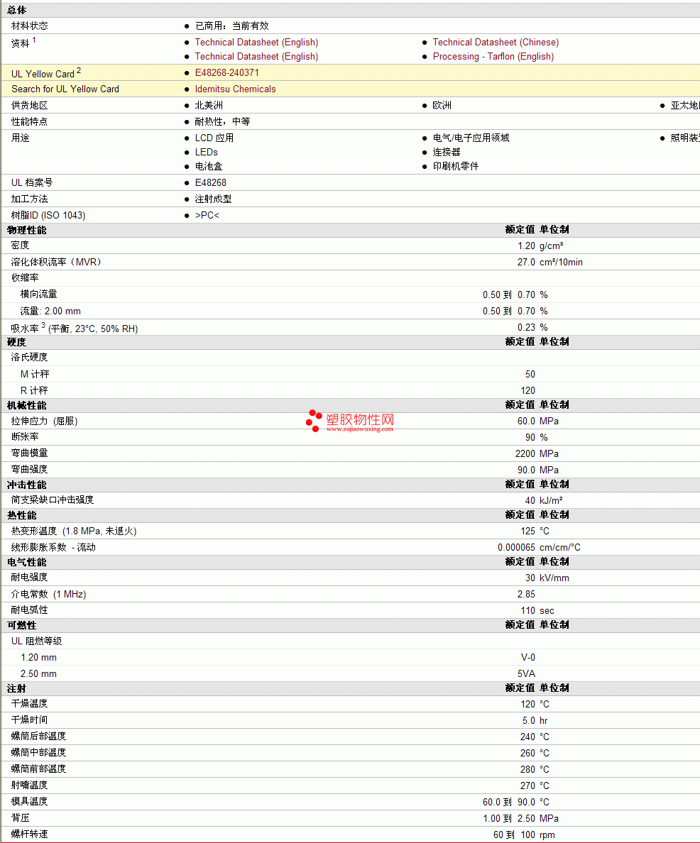 Tarflon pc AC1030物性表见图片